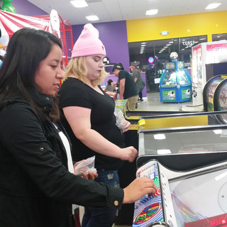 Before November break started, we decided to hold a social event at Nickel Nickel Arcade so members could bond and attend an affordable event to enjoy themselves. The arcade was very convenient where admission was only $2 and nickels were used at every game station. This opportunity was to help members take a break from studying and just to play games with each other. Some games we played were Deal or No Deal, Win the Jackpot, Air Hockey, Jumping Jackpot, and Dance Dance Revolution Supernova 2. At the end of the night, we won 510 tickets. With these tickets, we decided to split the prizes amongst each other. Some prizes we got were a blow up bat, airheads, and other candies.